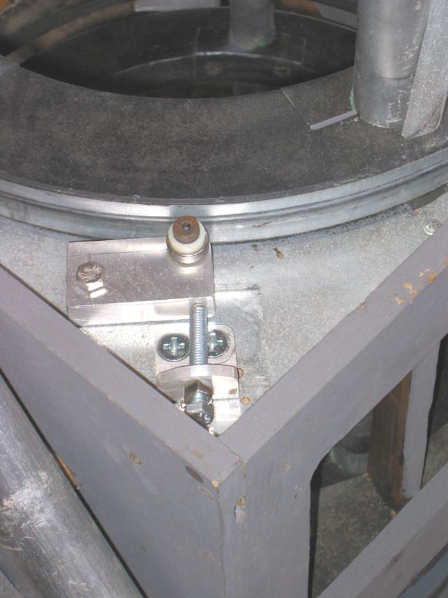 -  The horseshoe bearings are the drive bearings and do not really allow free rotation.  Before cutting out the inner part of the horseshoe, I installed a removable steel angle with a hole at the axis of rotation. This allows me to later on locate the RA axis gives the ability to balance the axis by substituting the drive gears with a single bearing point.  Neglect this detail and all is lost.