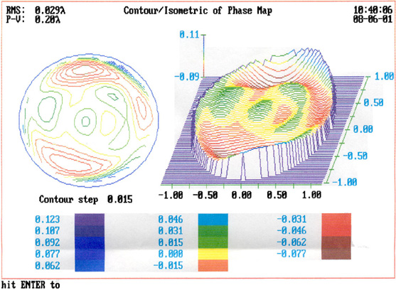 The process of having a mirror fabricated and then rejecting it took quite a lot longer than I had planned, but the wait was well worth it. The mirror from Swayze Optical is excellent. Maybe better than that. Below are the interferometer test results.