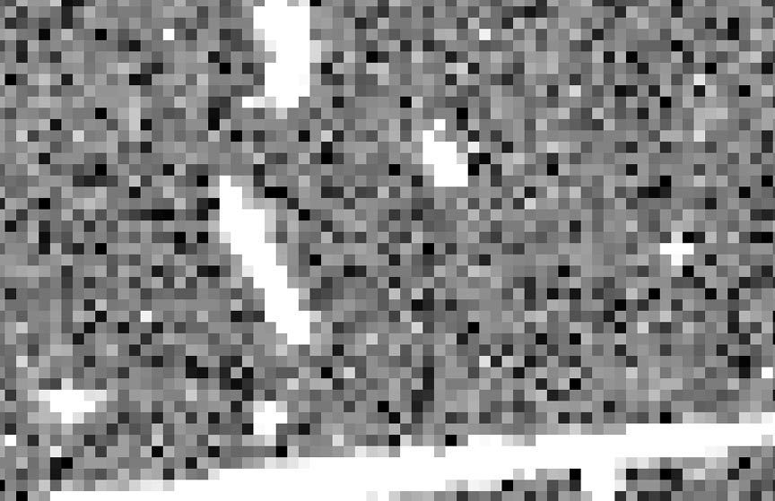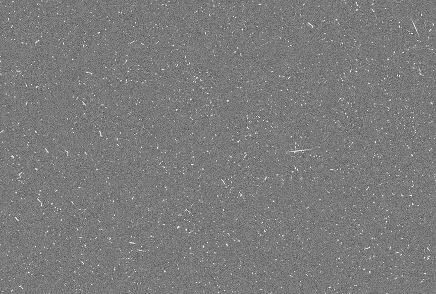 A visual inspection reveals one long cosmic ray hit is barely visible at lower center. In fact however, there are 191 more, only a couple of which are visible without special processing.