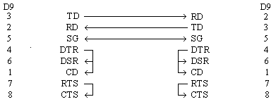A. Signal ground, transmit and receive should be all the lines needed. For a simple null modem just wire transmit to receive and receive to transmit.